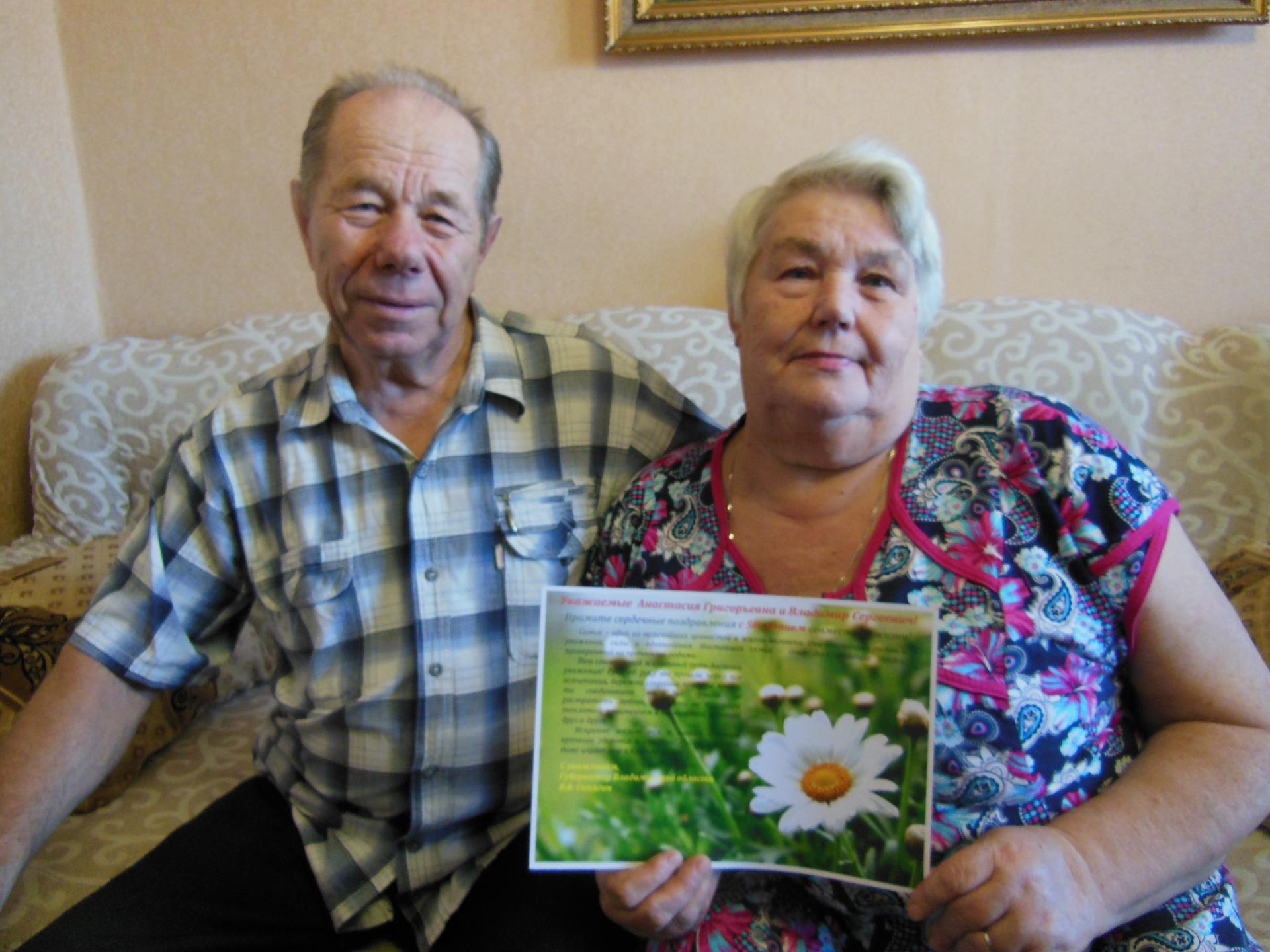 Сотрудники учреждений социальной защиты населения поздравили семейные пары, вручили поздравительный адрес от Губернатора Владимирской области, пожелали парам семейного благополучия, крепкого здоровья, счастья.