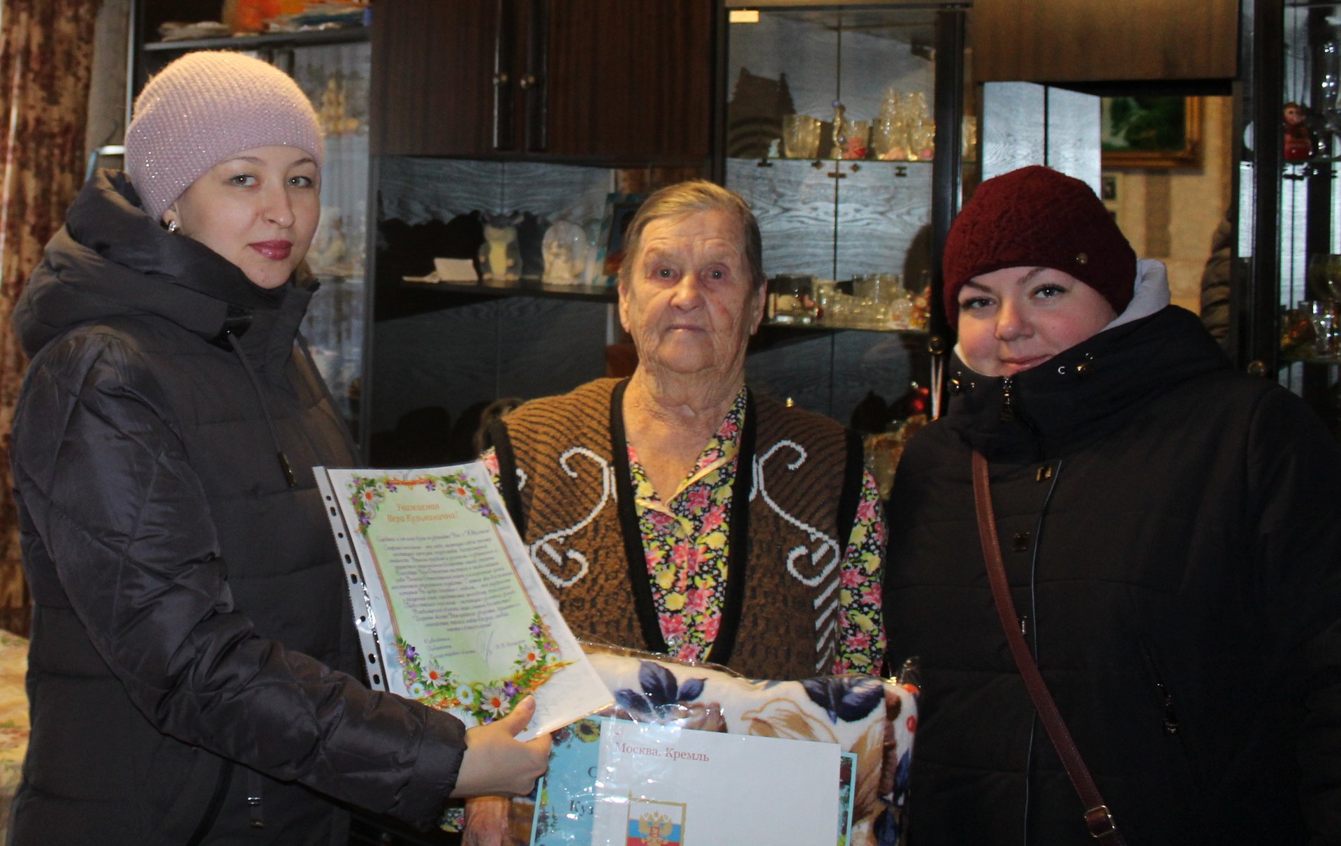 Вере Кузьминичне передан поздравительный адрес от Губернатора Владимирской области со словами благодарности за труд и терпение, вклад в развитие родной области, пожелания крепкого здоровья и благополучия, а также вручены памятные подарки.