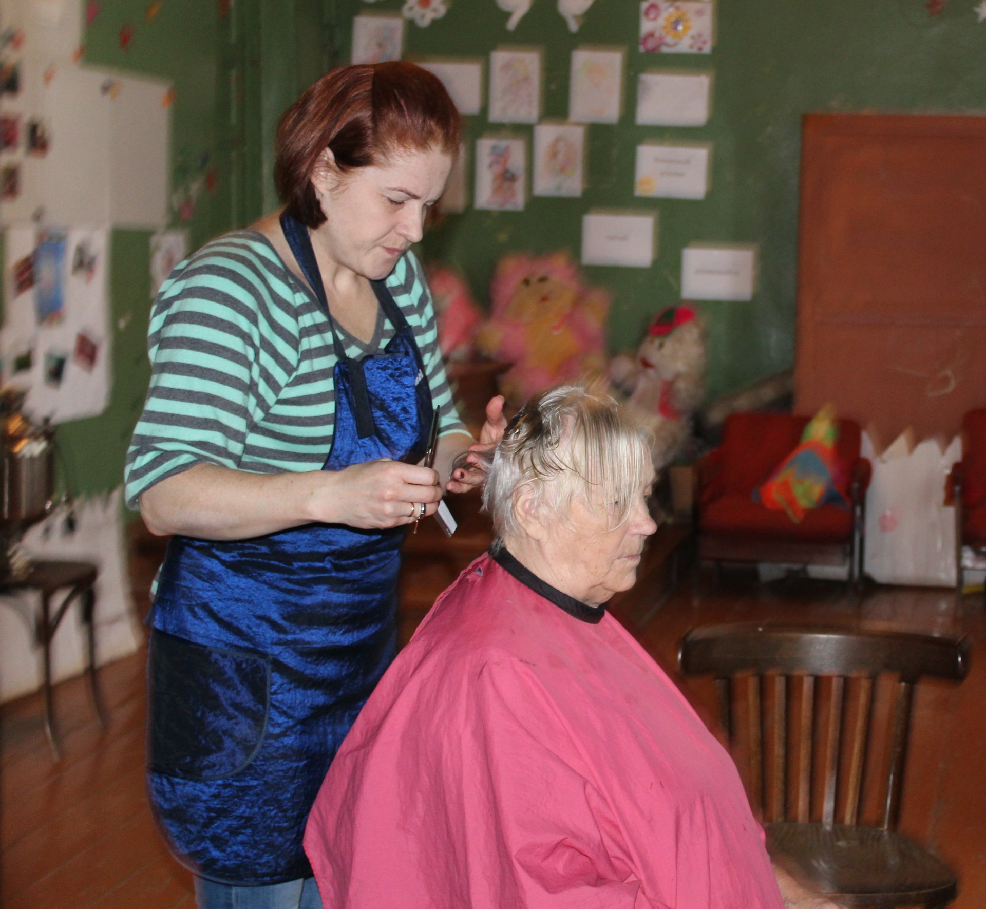 Желающие воспользовались услугами парикмахера от Учебного центра «Афродита».